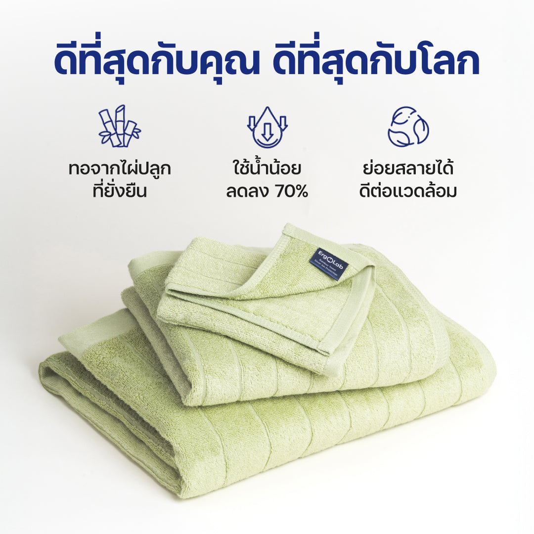 ผลิตจากต้นไผ่ที่เติบโตเร็วและหมุนเวียนได้ตามธรรมชาติ ผ้าขนหนูของเราใช้พลังงานและน้ำในการผลิตน้อยกว่าผ้าทั่วไปถึง 70% ย่อยสลายได้ตามธรรมชาติ ได้รับการรับรองมาตรฐาน OEKO-TEX® และปราศจากสารเคมีรุนแรง ปลอดภัยต่อผิวคุณ และดีต่อโลกใบนี้